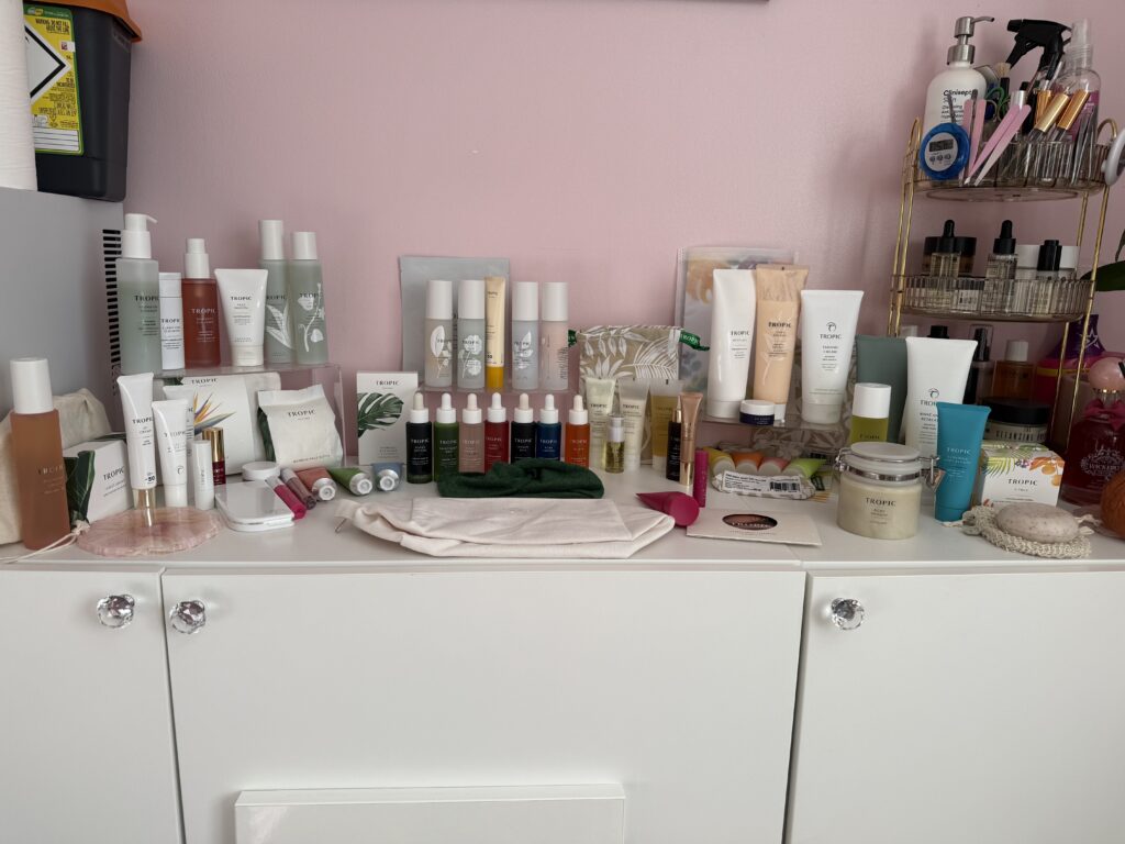 I am a Tropic Ambassador the main way I do my business is via pampers, in people’s houses, where you get a couple of your friends around and I turn up with a selection of the products and you can try out all the Tropic goodies for a couple of hours. As a host for the pamper you get 15% of your sales to spend on your own Tropic goodies.